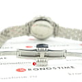 Стильный аксессуар можно смело сочетать с любыми платьями и нарядами, особенно хорошо будет смотреться в сочетании с офисным стилем. Акцент сделан на узорчатом циферблате с винтажными римскими цифрами. Корпус и браслет выполнены из нержавеющей стали. Автоматический механизм ETA 2671 характеризуется запасом хода до 38 часов. Водостойкость 30 метров. . Окошко текущего числа. EOLEOLПредставляет собой систему, уведомляющую владельца часов о необходимости замены элемента питания. За 2 недели до полного разряда батарейки секундная стрелка перестаёт ходить чётко и начинает перепрыгивать на 3-4 деления.. Габариты: 25,3 x 25,3 x 8,4 мм.