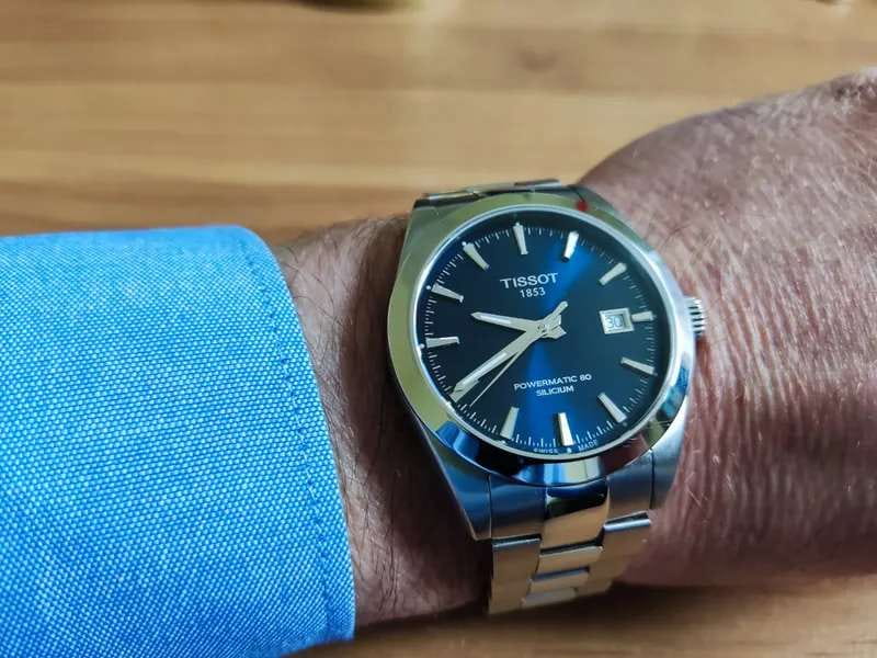 Мужские наручные часы из классической коллекции Gentleman с синим циферблатом шикарно смотрятся со строгим пиджаком.
