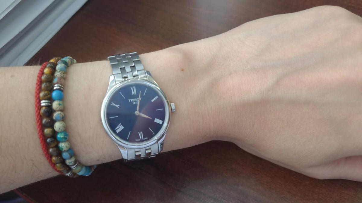 Синий циферблат, дополненный винтажными римскими цифрами, идеально смотрится в сочетании с серебристым отливом корпуса (самый тонкий из всех аксессуаров Tissot - толщина 5,5 мм) из нержавеющей стали 316L. Лаконичное оформление. Кварцевый высокоточный механизм ETA E61.031. Сапфировое стекло невозможно поцарапать. Водостойкость при давлении 3 бар. . Габариты: 31 x 31 x 5,5 мм.