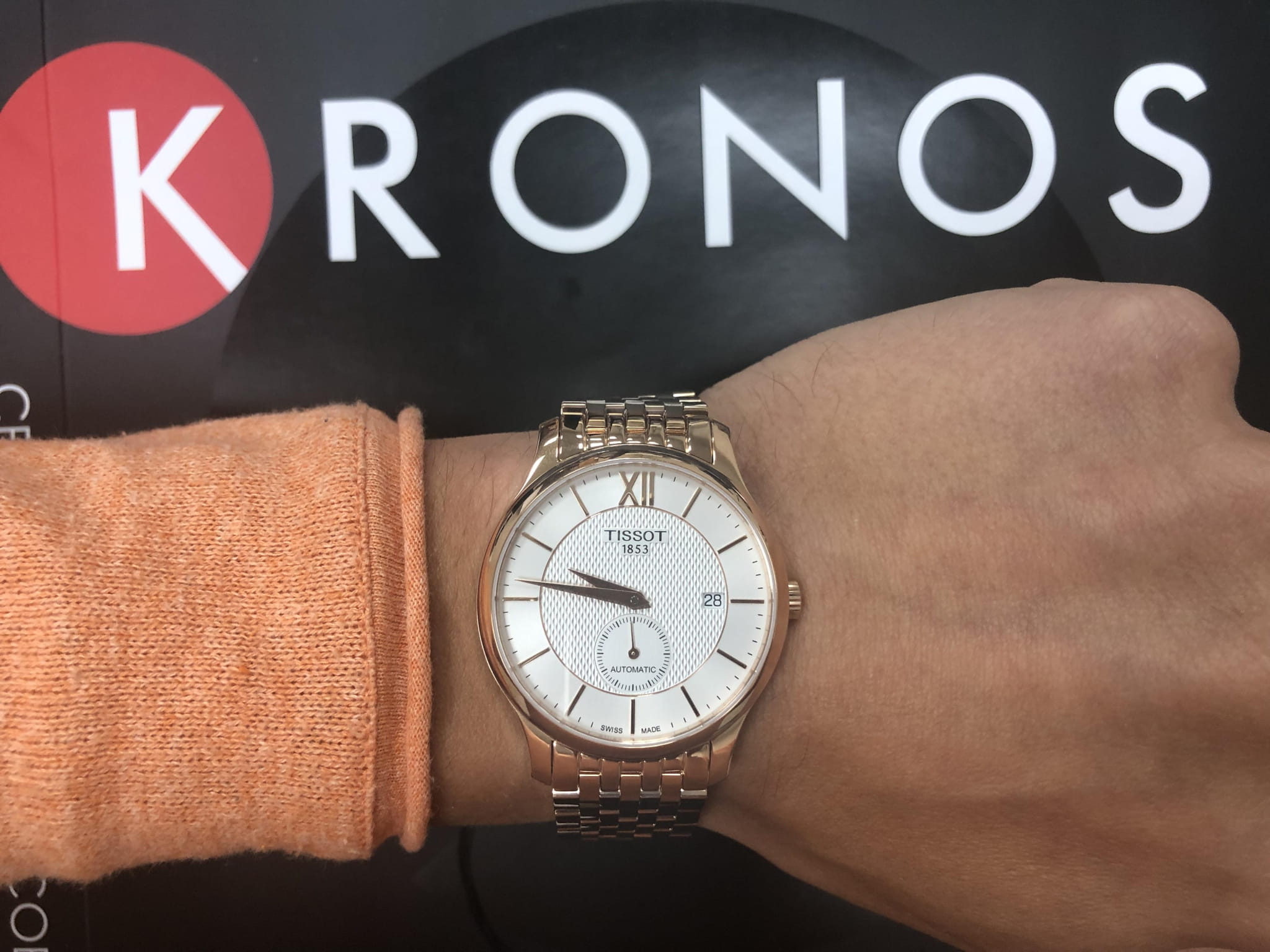 Брендовые наручные часы в цвете розового золота привлекут к себе внимание окружающих, помогут разнообразить строгий офисный или деловой стиль. Необычный оттенок получают за счёт слоя PVD-покрытияPVDУльтратонкое покрытие наносится в технике вакуумного напыления, сочетает в себе нитрид титана особой прочности со слоем золота или оксида хрома. Несёт в себе декоративную или защитную функцию., устойчивого к износу. Циферблат с отдельным секундным окошком украшен узором. Часы с автоматической системой завода имеют механизм ETA 2825-2 с запасом хода 38 часов. Надёжное сапфировое стекло. Корпус из долговечной хирургической стали. Отображение даты. Габариты: 40 x 40 x 11 мм.