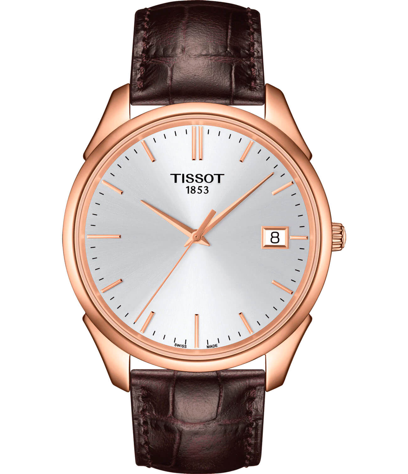 TISSOT T920.410.76.031.00 - мужские кварцевые золотые наручные часы. Корпус этих часов небольшого размера (40 мм) и выполнен из 18-каратного розового золота. Модель T920.410.76.031.00 имеет устойчивое к царапинам сапфировое стекло, кожаный ремешок ,циферблат серебристый. Калибр механизма: ETA F07.111. Класс водозащиты: 30 м /3 АТМ. Дополнительные функции и особенности: отображение числа. Полная заводская комплектация TISSOT: оригинальные часы, фирменная коробка, инструкция, сервисная книжка, роман о часовой фабрике, миникаталог, замшевый фирменный чехол черного цвета для хранения и/или переноски часов, кассовый и товарный чеки. Международная гарантия 2 года. Производство и сборка: Швейцария.