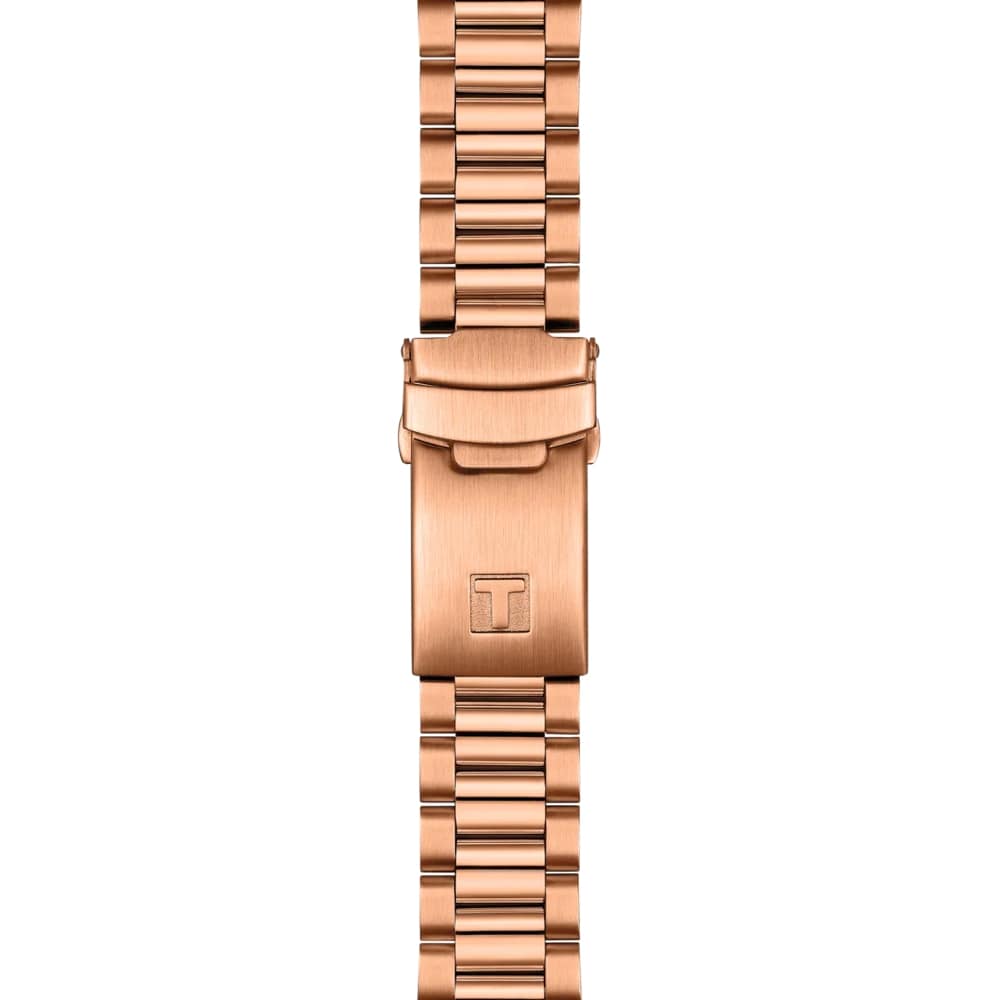 Tissot PR516 Quartz Chronograph T149.417.33.051.00 – элегантные мужские часы, вдохновлённые миром автоспорта 1960-х годов. Корпус диаметром 40 мм и толщиной 12,16 мм выполнен из нержавеющей стали 316L с PVD-покрытиемPVDУльтратонкое покрытие наносится в технике вакуумного напыления, сочетает в себе нитрид титана особой прочности со слоем золота или оксида хрома. Несёт в себе декоративную или защитную функцию. розового золота, придающим модели стильный и современный вид. Чёрный циферблат защищён сапфировым стекломСапфировое стеклоПрочный и надёжный материал из кристалла сапфира синтетического происхождения, характеризующийся особой твёрдостью и устойчивостью к царапинам и повреждениям. с антибликовым покрытиемАнтибликовое покрытиеСлой оксида металла в 0,13-0,3 микрон, благодаря которому стекло часов не бликует и не отражает свет. Антибликовое покрытие уменьшает отражение света в 10 раз, обеспечивая отличную читаемость показателей циферблата., обеспечивающим устойчивость к царапинам и отличную читаемость. Задняя крышка корпуса украшена гравировкой, подчёркивающей уникальность дизайна. Часы оснащены швейцарским кварцевым механизмом с функцией хронографаХронографФункция позволяет измерять отрезки времени с особой точностью: часы, минуты, секунды. Верным признаком хронографа является наличие на циферблате 3 дополнительных окошек-счётчиков., обеспечивающим высокую точность хода. Функциональность модели включает 30-минутный и 1/10-секундный счётчики, центральную 60-секундную стрелку хронографа, а также функции ADD и сплит-хронографаСплит-хронографИспользуется для измерения продолжительности нескольких временных отрезков, начинающихся одновременно, а заканчивающихся в разное время.. Индексы и стрелки покрыты люминесцентным покрытиемЛюминесцентное покрытиеПозволяет считывать показания времени в темноте. Производители наносят на стрелки, часовые индексы, безель или поверхность циферблата светонакопительный состав, дающий холодное свечение. Super-LumiNova®, обеспечивающим отличную видимость в условиях низкой освещённости. Браслет из нержавеющей стали с PVD-покрытиемPVDУльтратонкое покрытие наносится в технике вакуумного напыления, сочетает в себе нитрид титана особой прочности со слоем золота или оксида хрома. Несёт в себе декоративную или защитную функцию. розового золота оснащён системой быстрой замены и раскладной застёжкойРаскладная застёжкаТакой тип застёжки используется только на браслетах из металла. Она никогда не раскрывается полностью, происходит разделение на 2 и более частей. Раскладывающая застёжка снизит вероятность потери часов к минимуму. с предохранителем и кнопками, обеспечивающей комфортное ношение и надёжную фиксацию на запястье. Водозащита до 100 метров (10 бар) позволяет использовать часы во время плавания и других водных видов спорта.