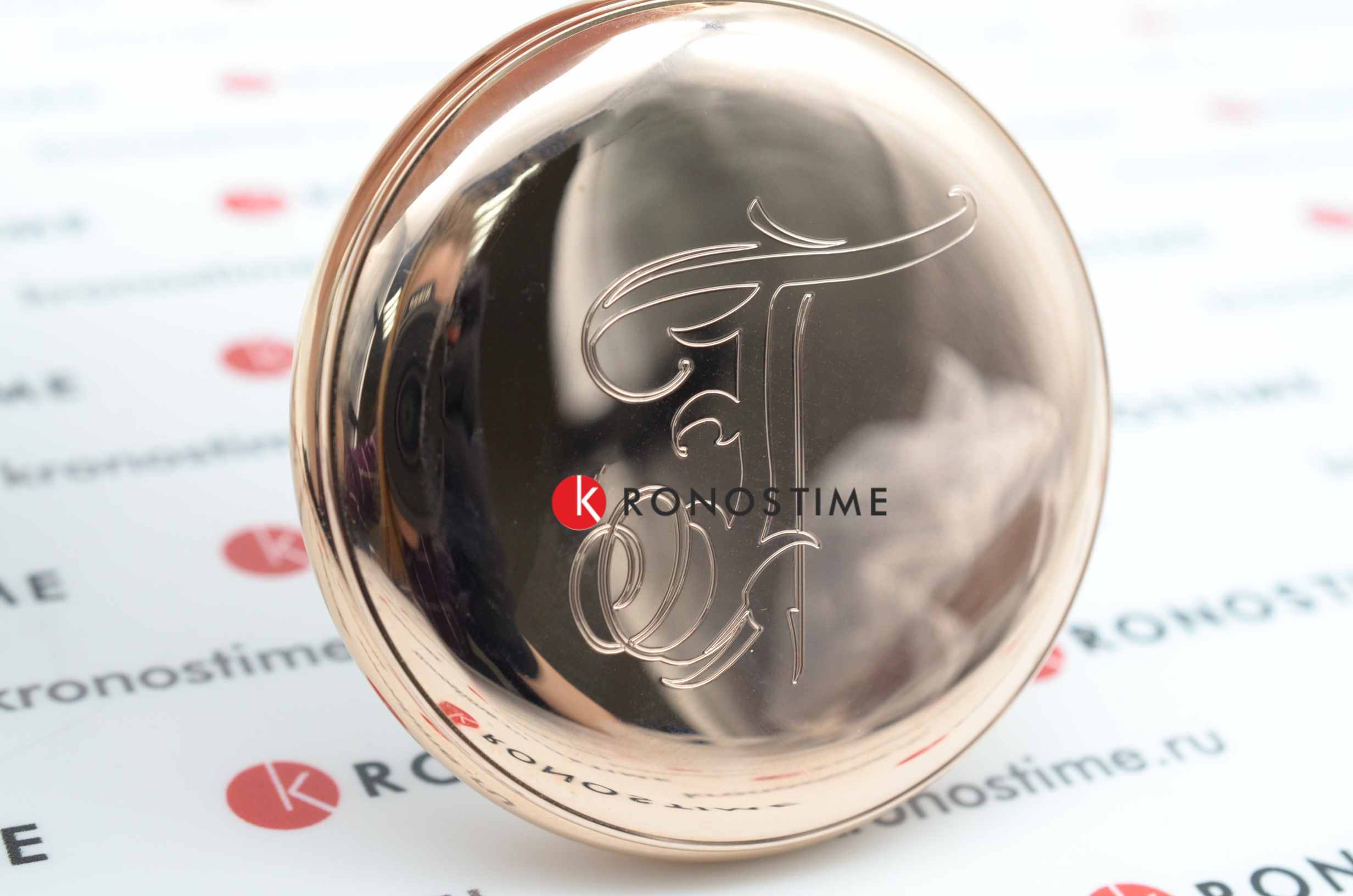 Модель имеет черты утончённости во всём: ажурные стрелки, римские цифры, лаконичный растительный узор, гравировка на задней крышке. Часы с ручным заводом оснащены механизмом ETA 6497, запас хода составляет 46 часов. Минеральное стекло. Отдельный секундный счётчик. Корпус из латуни и позолоты. Цепочка в комплекте. Габариты: 51 x 51 x 12 мм.