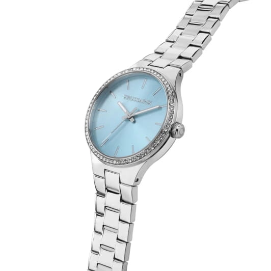 Итальянские женские часы Trussardi T-Essenzat R2453172506 - это стильный женский аксессуар, который сочетает элегантный дизайн и практичность. Корпус выполнен из нержавеющей стали с безелемБезельВнешний ободок, закрепляющий стекло. В спортивных часах так называется поворотное кольцо с делениями на циферблате, выполняет роль таймера – замеряет отрезки времени на шкале. Неподвижный безель – элемент декора. Однонаправленно вращающийся безель на дайверских часах позволяет фиксировать моменты погружения и выныривания на поверхность. с кристаллами, что обеспечивает долговечность и утончённый внешний вид. Надежное минеральное стеклоМинеральное стеклоМинеральное стекло представляет собой искусственно выращенный минерал кварца. Такое стекло отличается особой устойчивостью к повреждениям и царапинам. Уступает по некоторым качествам сапфировому стеклу. защищает циферблат от царапин и обеспечивает долговечность. Модель оснащена кварцевым механизмом, обеспечивающим высокую точность хода. Браслет из нержавеющей стали на раскладной застёжкеРаскладная застёжкаТакой тип застёжки используется только на браслетах из металла. Она никогда не раскрывается полностью, происходит разделение на 2 и более частей. Раскладывающая застёжка снизит вероятность потери часов к минимуму. обеспечивает комфортное ношение. Стрелки с люминесцентным покрытиемЛюминесцентное покрытиеПозволяет считывать показания времени в темноте. Производители наносят на стрелки, часовые индексы, безель или поверхность циферблата светонакопительный состав, дающий холодное свечение.. Водозащита 50 метров позволит защитить корпус от случайных брызг или капель дождя. Эта модель – отличный выбор для тех, кто ищет сочетание стиля, качества и функциональности. Часы станут не только полезным аксессуаром, но и выразительным элементом вашего имиджа.