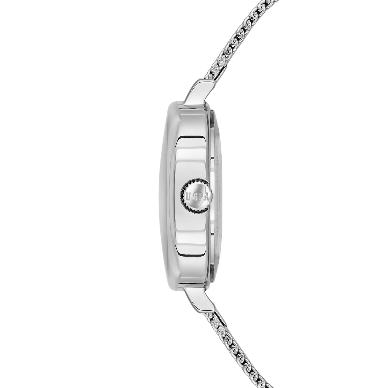 Женские часы U.S. Polo Assn. USPA2087-01 кварцевый механизм с высокой точностью. Минеральное стеклоМинеральное стеклоМинеральное стекло представляет собой искусственно выращенный минерал кварца. Такое стекло отличается особой устойчивостью к повреждениям и царапинам. Уступает по некоторым качествам сапфировому стеклу. устойчивое к появлению царапин, обладающее высокой прозрачностью. Корпус изготовлен из нержавеющей стали. Класс водозащиты: 30 метров, позволит защитить корпус от случайных брызг или капель дождя. Стальной браслет миланского плетения на раскладной застёжкеРаскладная застёжкаТакой тип застёжки используется только на браслетах из металла. Она никогда не раскрывается полностью, происходит разделение на 2 и более частей. Раскладывающая застёжка снизит вероятность потери часов к минимуму.. Неподвижный безельБезельВнешний ободок, закрепляющий стекло. В спортивных часах так называется поворотное кольцо с делениями на циферблате, выполняет роль таймера – замеряет отрезки времени на шкале. Неподвижный безель – элемент декора. Однонаправленно вращающийся безель на дайверских часах позволяет фиксировать моменты погружения и выныривания на поверхность.