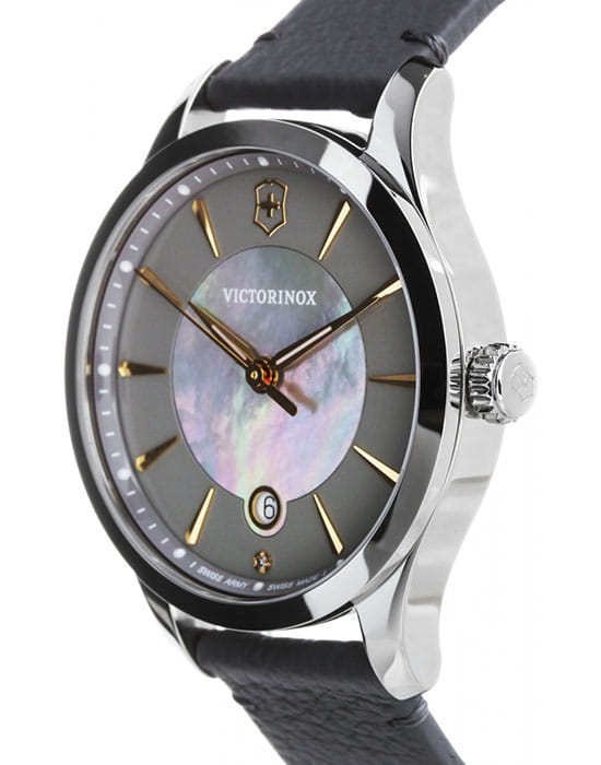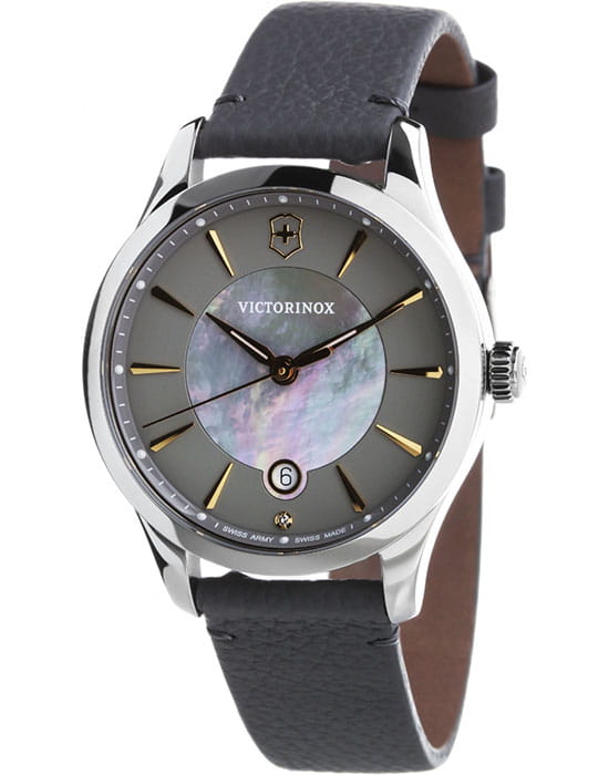 Женские швейцарские часы с сапфировым стеклом и бриллиантом Victorinox 241756, кварцевый механизм с высокой точностью. Сапфировое стекло устойчивое к появлению царапин, обладающее высокой прозрачностью. Класс водозащиты: 100 метров, позволит плавать, нырять и заниматься другими водными видами спорта. Корпус часов изготовлен из стали, цвета.
