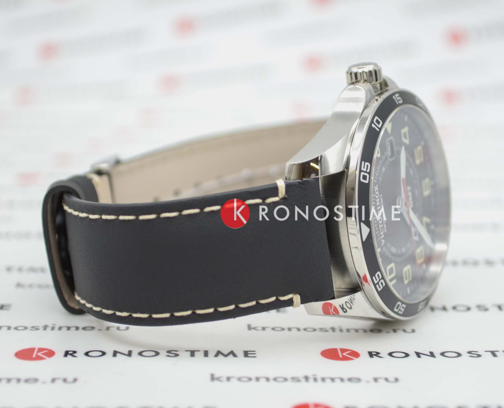 Мужские швейцарские часы Victorinox Fieldforce GMT 241895 с надёжным кварцевым механизмом. Сапфировое стеклоСапфировое стеклоПрочный и надёжный материал из кристалла сапфира синтетического происхождения, характеризующийся особой твёрдостью и устойчивостью к царапинам и повреждениям. с трёхслойным антибликовым покрытием. Корпус часов выполнен из нержавеющей стали 316L. Практичный кожаный ремешок на стандартной застёжке. Влагозащита: 100 метров, позволит плавать, нырять и заниматься другими водными видами спорта. Окошко даты и дня недели находится в положении 3 часа. Стрелки и метки с люминесцентным покрытиемЛюминесцентное покрытиеПозволяет считывать показания времени в темноте. Производители наносят на стрелки, часовые индексы, безель или поверхность циферблата светонакопительный состав, дающий холодное свечение.. Второй часовой поясВторой часовой поясФункция, позволяющая отображать время двух часовых поясов одновременно..