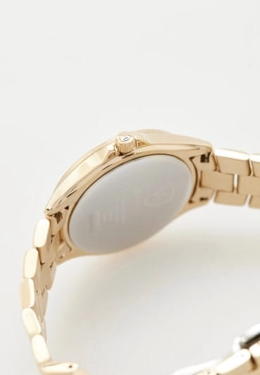 Циферблат защищен закаленным минеральным стекломМинеральное стеклоМинеральное стекло представляет собой искусственно выращенный минерал кварца. Такое стекло отличается особой устойчивостью к повреждениям и царапинам. Уступает по некоторым качествам сапфировому стеклу., что обеспечивает высокую устойчивость к царапинам и повреждениям. Окошко даты расположено в положении 3 часа, делая информацию максимально доступной. БезельБезельВнешний ободок, закрепляющий стекло. В спортивных часах так называется поворотное кольцо с делениями на циферблате, выполняет роль таймера – замеряет отрезки времени на шкале. Неподвижный безель – элемент декора. Однонаправленно вращающийся безель на дайверских часах позволяет фиксировать моменты погружения и выныривания на поверхность. с PVD-покрытиемPVDУльтратонкое покрытие наносится в технике вакуумного напыления, сочетает в себе нитрид титана особой прочности со слоем золота или оксида хрома. Несёт в себе декоративную или защитную функцию..