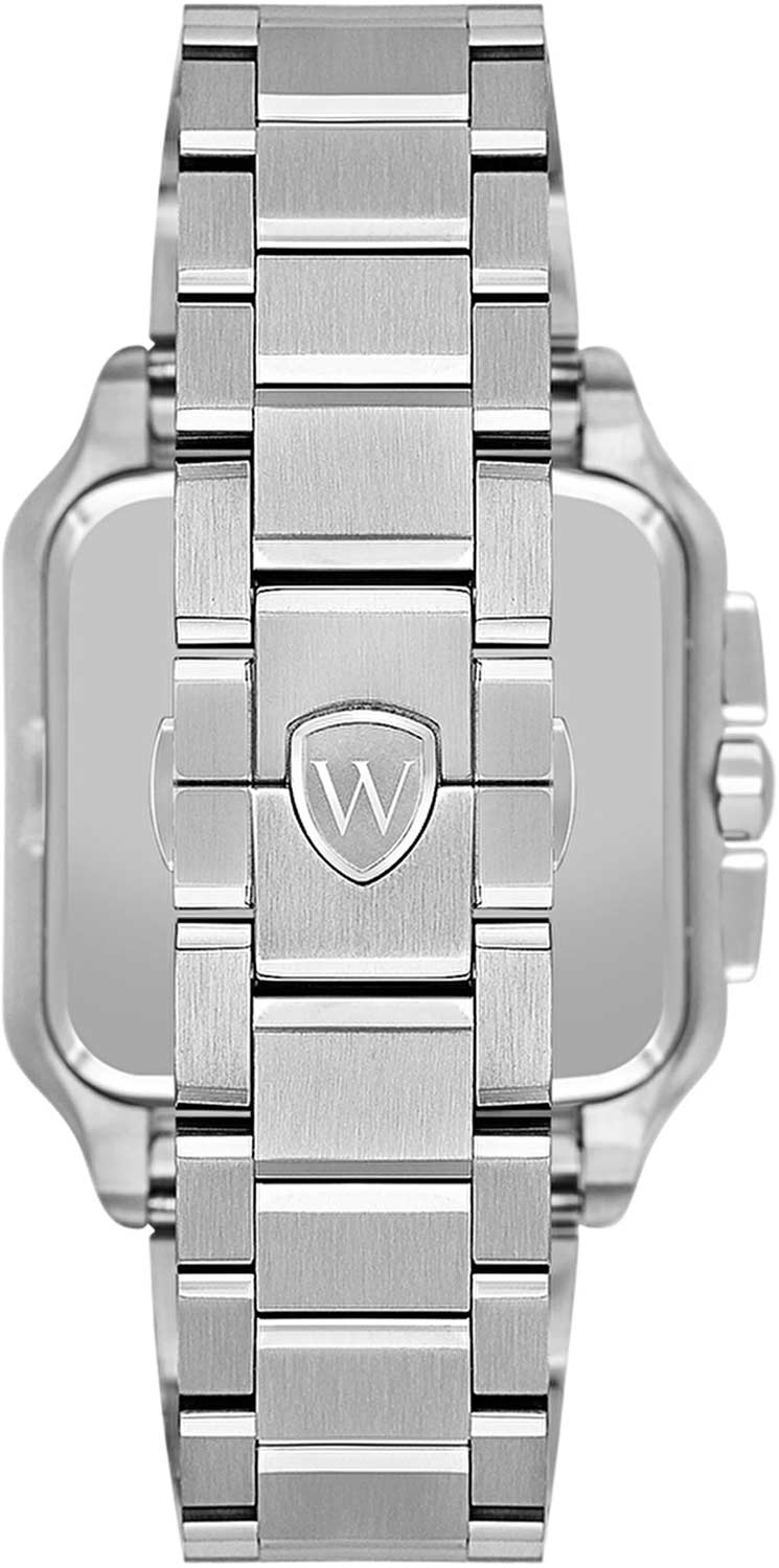 Мужские кварцевые часы Wainer WA.18090-D — это стильный аксессуар, сочетающий в себе швейцарское качество и изысканный дизайн. Модель выполнена в квадратной форме из стали 316L с декоративными винтами, что придаёт ей прочность и устойчивость к царапинам. Циферблат дополнен штриховыми метками и римскими цифрами, а секундная стрелка на конце декорирована буквой W, подчёркивая внимание к деталям. Защиту механизма обеспечивает сапфировое стеклоСапфировое стеклоПрочный и надёжный материал из кристалла сапфира синтетического происхождения, характеризующийся особой твёрдостью и устойчивостью к царапинам и повреждениям., устойчивое к повреждениям. Окошко даты расположено в положении 4 часов, а гранёная заводная головка с защитой оснащена фирменным логотипом, добавляя модели индивидуальности. Браслет из стали 316L шириной 22 мм оснащён Раскладная застёжкаРаскладная застёжкаТакой тип застёжки используется только на браслетах из металла. Она никогда не раскрывается полностью, происходит разделение на 2 и более частей. Раскладывающая застёжка снизит вероятность потери часов к минимуму., обеспечивающей комфорт и надёжную фиксацию на запястье. Водонепроницаемость позволяет использовать модель при мытье рук или под лёгким дождём. Стрелки с люминесцентным покрытиемЛюминесцентное покрытиеПозволяет считывать показания времени в темноте. Производители наносят на стрелки, часовые индексы, безель или поверхность циферблата светонакопительный состав, дающий холодное свечение. обеспечивают отличную читаемость даже в условиях слабого освещения. Механизм калибра Ronda 5030.D гарантирует точность хода и надёжность. Эти часы станут универсальным аксессуаром для тех, кто ценит сочетание стиля, функциональности и швейцарского мастерства — идеальный выбор для повседневной носки и торжественных случаев.
