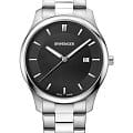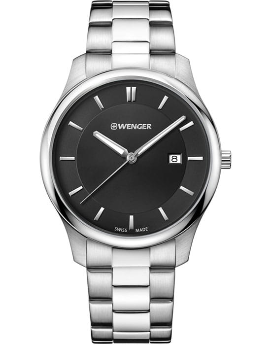 Мужские швейцарские часы с календарём Wenger 01.1441.104, кварцевый механизм с высокой точностью. Класс водозащиты: 30 метров, позволит защитить корпус от случайных брызг или капель дождя. Корпус часов изготовлен из стали, серебристого цвета.