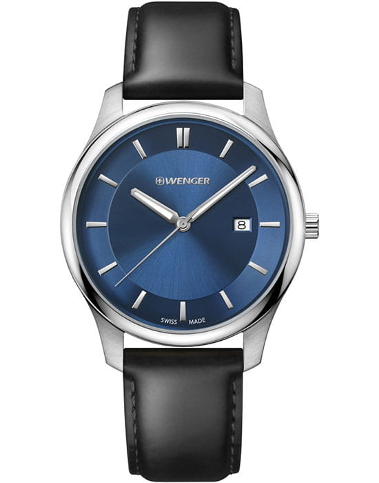 Мужские швейцарские часы с календарём Wenger 01.1441.118, кварцевый механизм с высокой точностью. Класс водозащиты: 30 метров, позволит защитить корпус от случайных брызг или капель дождя. Корпус часов изготовлен из стали, серебристого цвета.